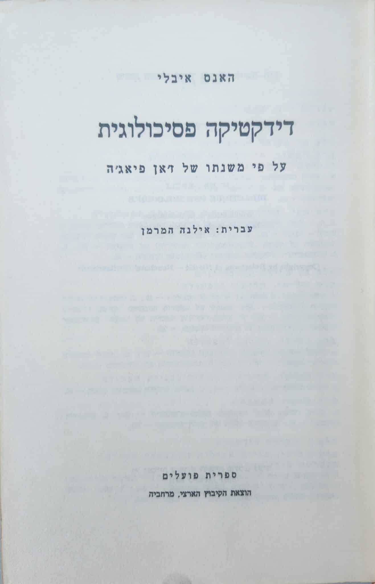בספר שלפנינו מיישם הנס אבלי את תורתו של פיאז'ה בתחום הפדגוגיה ובייחוד בתחום הדידקטיקה. הוא מציג בפני הקורא דידקטיקה החוקרת את התכונות העיקריות של התהליכים המעצבים את ההתפתחות השכלית ומסיק מכך את העקרונות המתודולוגיים שעליהם יש להשתית את ההוראה בכל המקצועות העיקרים. מלבד עקרונות פדגוגיים כלליים מובאות בספר דוגמאות מוחשיות ונסיונות דידקטיים רבים, שנועדו לבדוק באיזו מידה של הצלחה ניתן להשתמש בהם למעשה בתנאי בית-ספר רגילים.